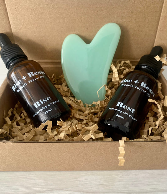 Rise + Reset is a natural, organic range which leaves skin nourished and radiant. The carefully curated blend of pure essential oils, in each product, releases aromas to touch the senses to invigorate or calm.